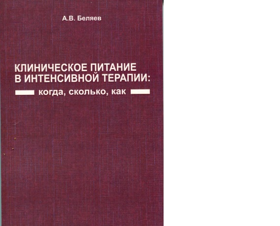 Беляев А.В. Клиническое питание в интенсивной терапии: когда, сколько, как. / А.В.Беляев – К.: КИМ, 2017. – 156 с. ISBN 978-617-628-072-9